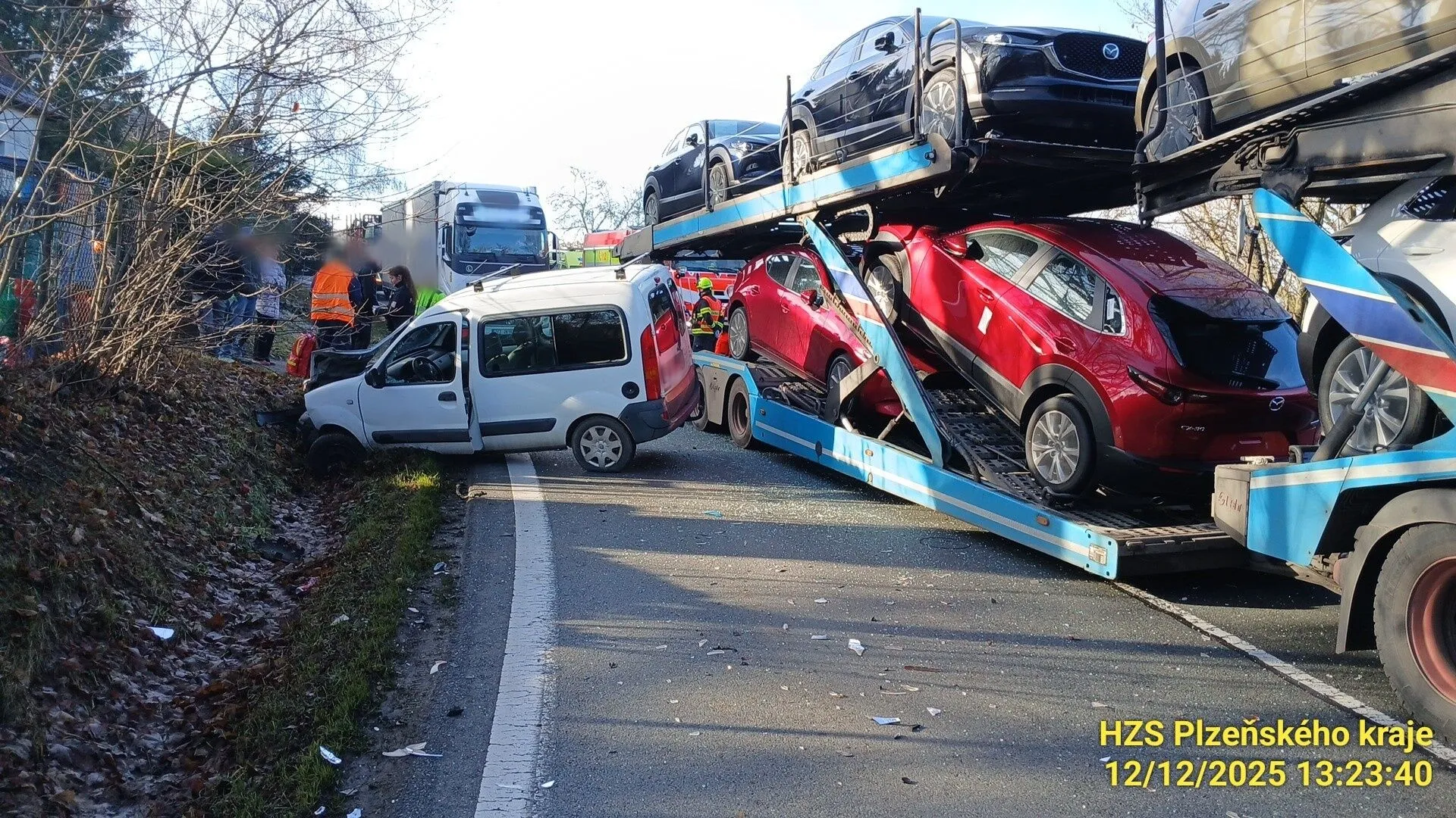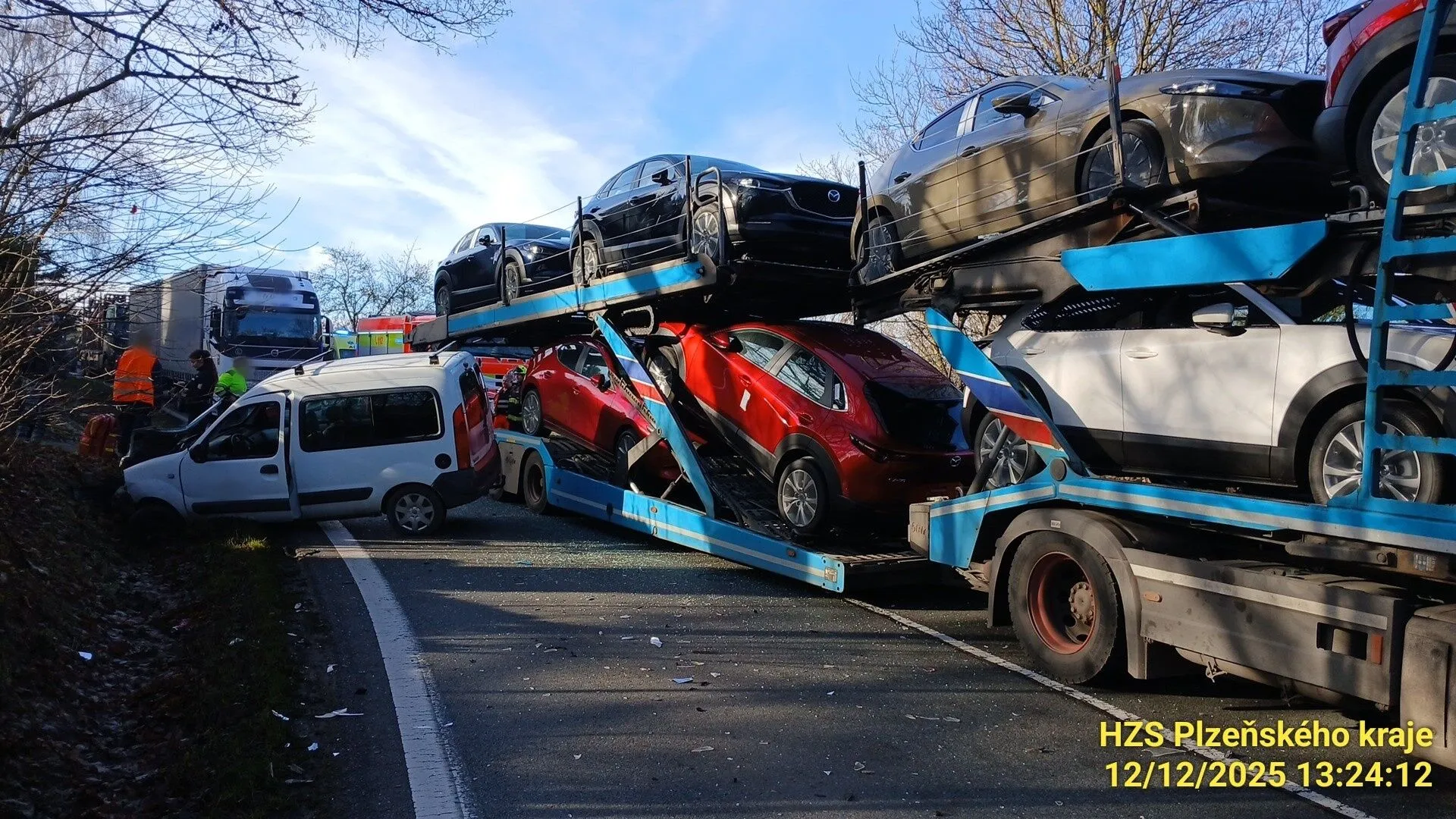 Dopravu na 128. kilometru silnice I/20 u Kasejovic v pátek 12. prosince kolem poledne výrazně zkomplikovala nehoda osobního a nákladního vozidla.